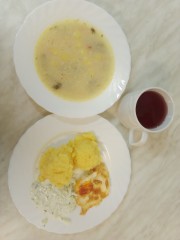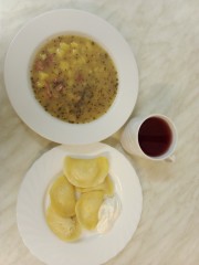 Obiad- dieta podstawowa (MODYFIKACJA- zamiana pierogów na ziemniaki, jajko sadzone i mizeria)